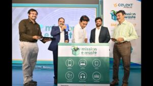 Telangana IT, Industries Minister K.Taraka Rama Rao unveiling the Mission E-waste initiative by Celekt Mobiles along with Jayesh Ranjan, Principal...