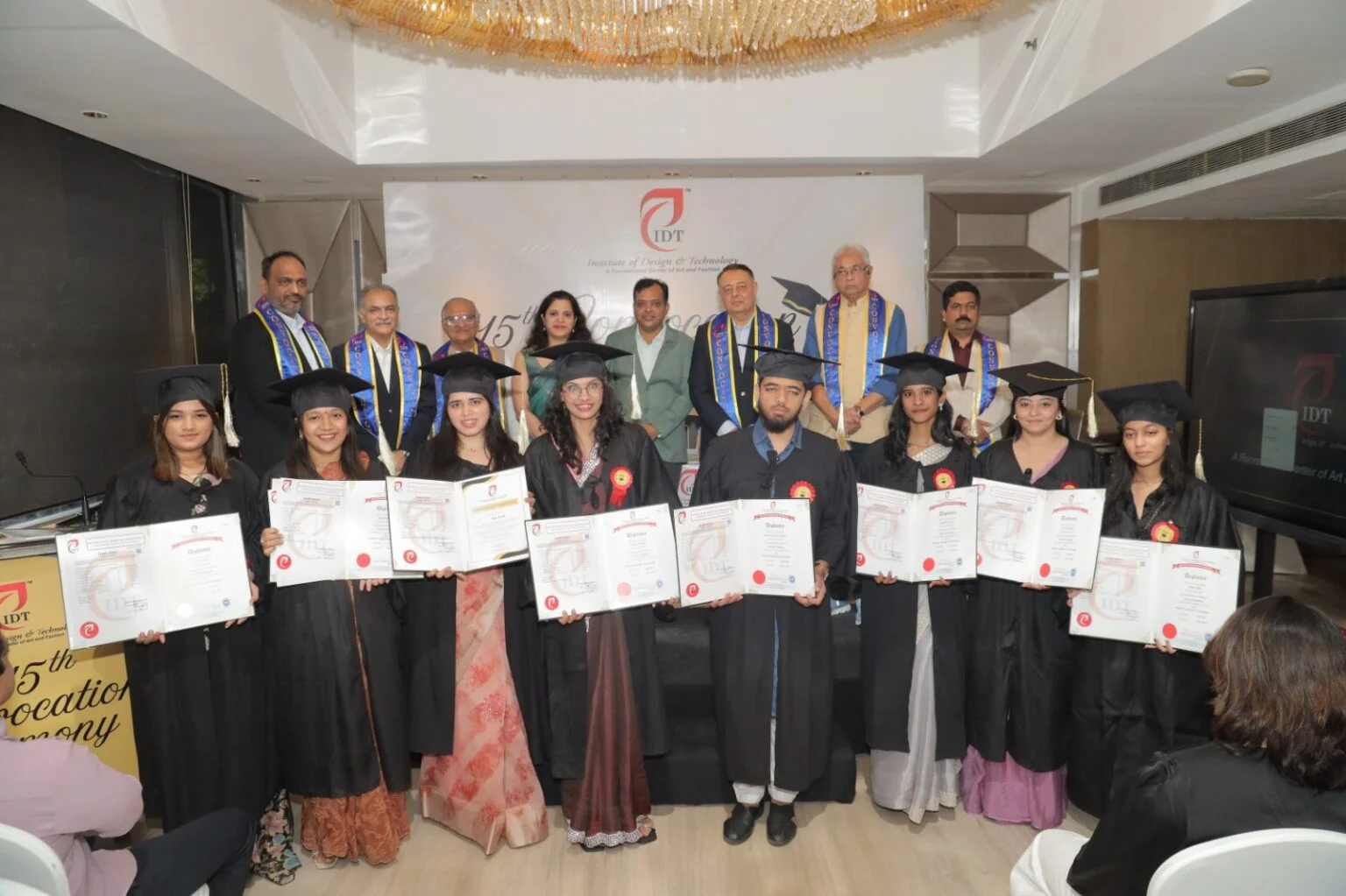 Institute of Design and Technology (IDT), a premium design institute based in Surat, successfully organized its 15th Convocation Ceremony at Avadh Utopia, Surat. On this occasion, students from various batches completed their education and received their certificates. IDT offers industry-oriented courses including Fashion Designing, Interior Designing, Digital Textile Printing, and Event Management, which equip students with creativity, technical skills, and professional competence.