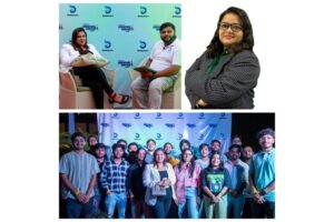 Top left (Influencer Neha Gupta with Host Ujwal), Top Right (Bullsmart CEO: Ankita Das), Bottom (Creator Meetup Group picture) Held...